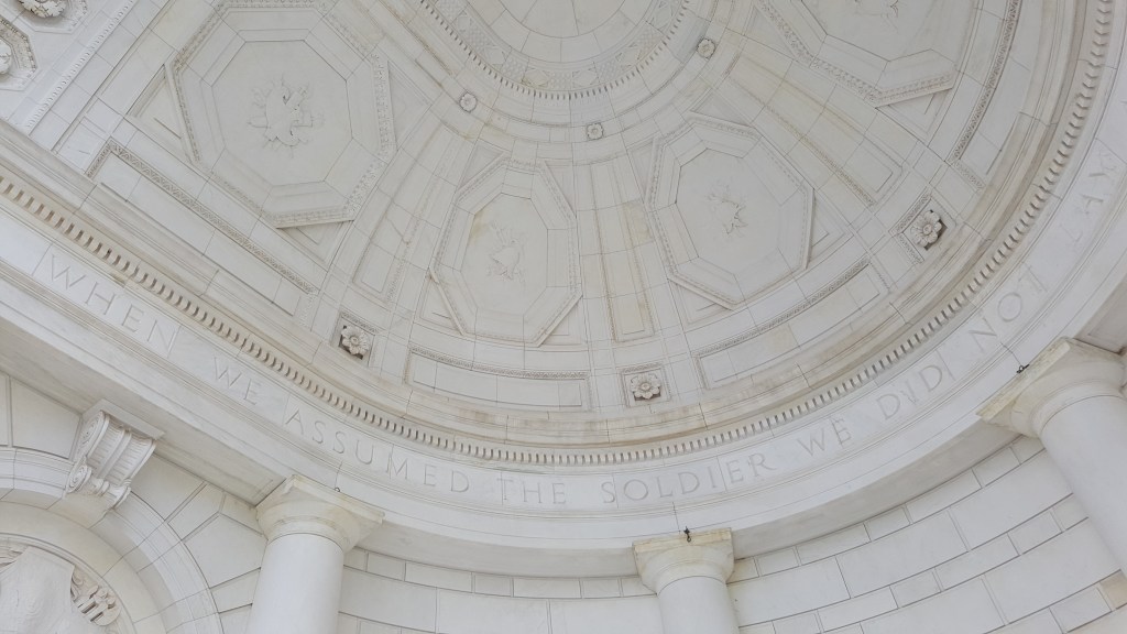 But what I will never forget and brings me to tears even to this day, was seeing the burial of a soldier who wasn’t as lucky as my sister. The soldier’s casket, draped with our beautiful flag, was brought through the paths via a horse drawn wagon. Other soldiers were near the wagon, walking alongside. You could have cut the somberness in the air with a knife. Seeing the beginning of the ceremony hit too close to home. It hurt. (We did not take photos of this as it just felt like it could be a private moment for that soldier and his family.)